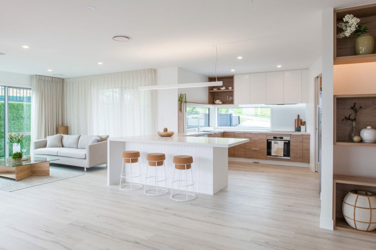 Raw materials are featured throughout the modern interior, and the higher than normal roof stud creates a sense of openness and luxury. Immerse yourself in the spacious layout of this family-friendly home, which includes four bedrooms, two living areas, and open plan kitchen/dining.